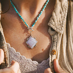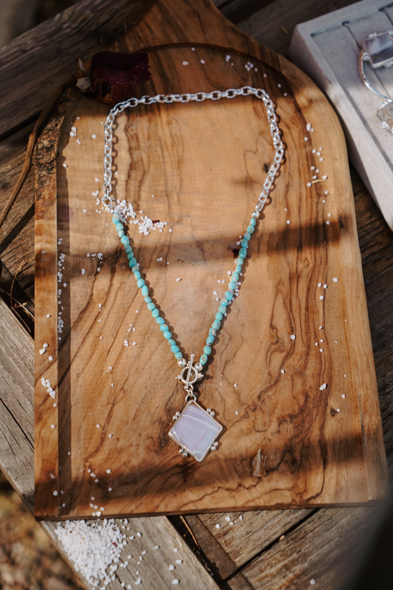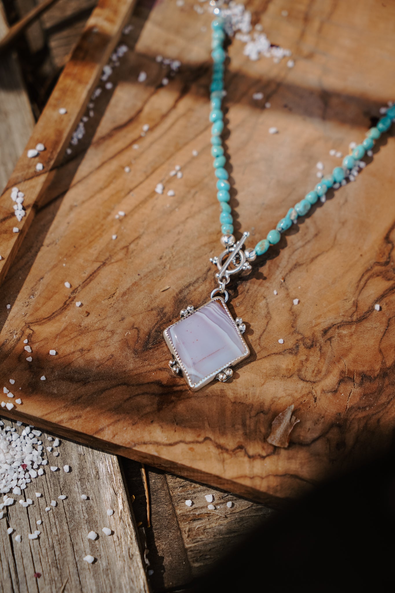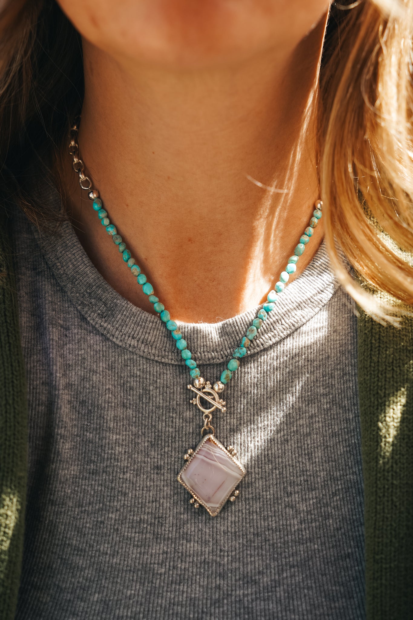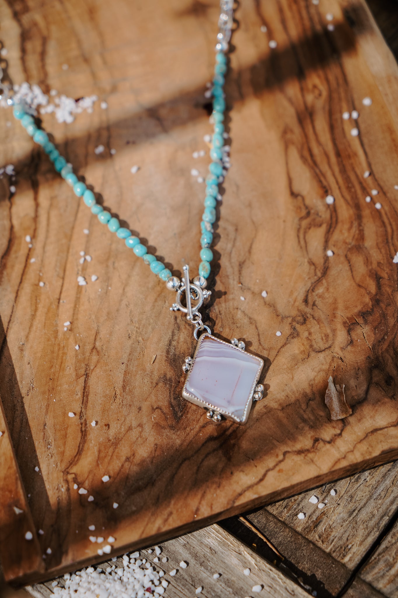 Toggle Necklace in Lace Agate w/ Turquoise Beads