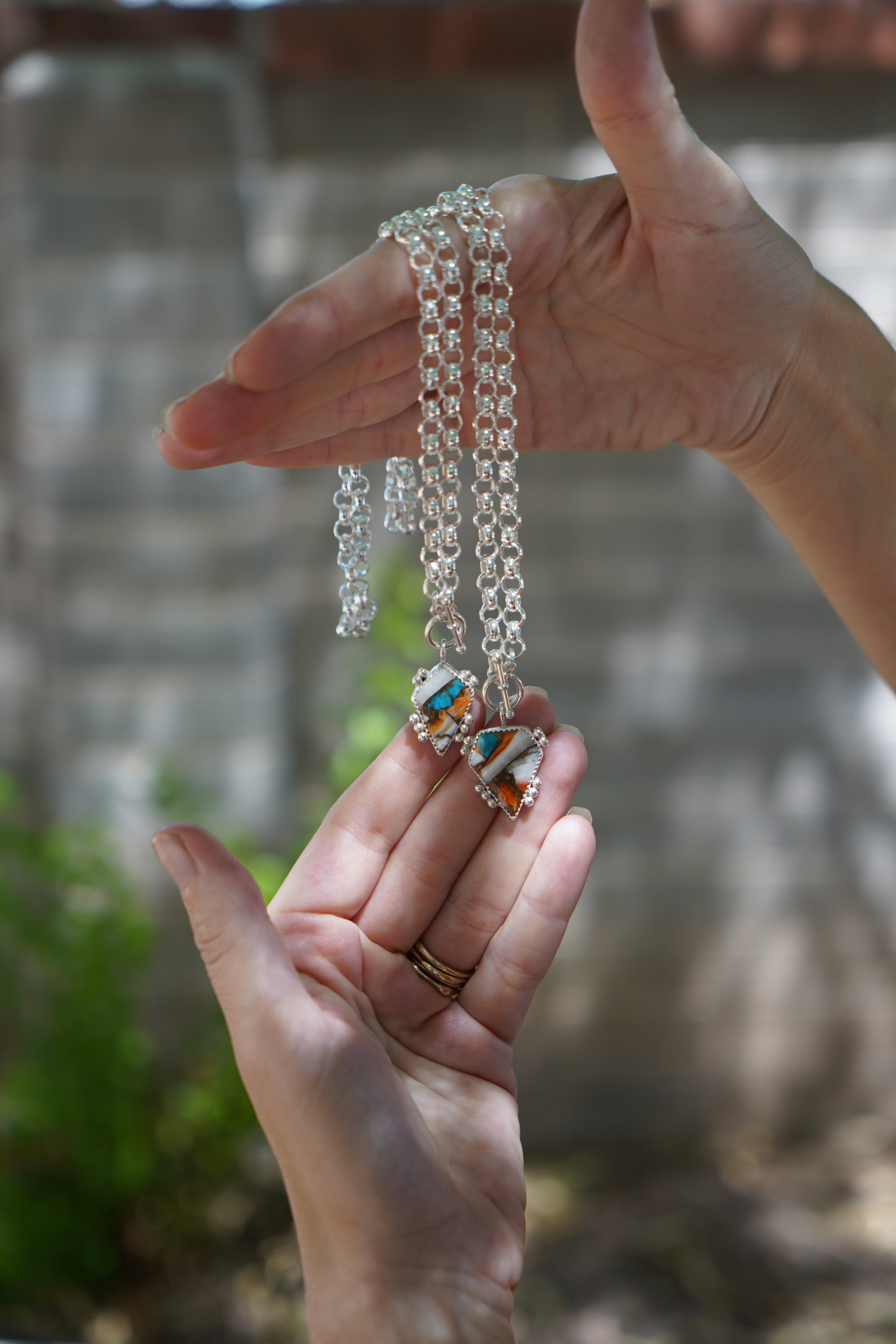 We LOVE these toggle necklaces with the decorative clasp in the front- so fun! Throw in this lovely Spiny Oyster stone and you've got a stunning necklace.
