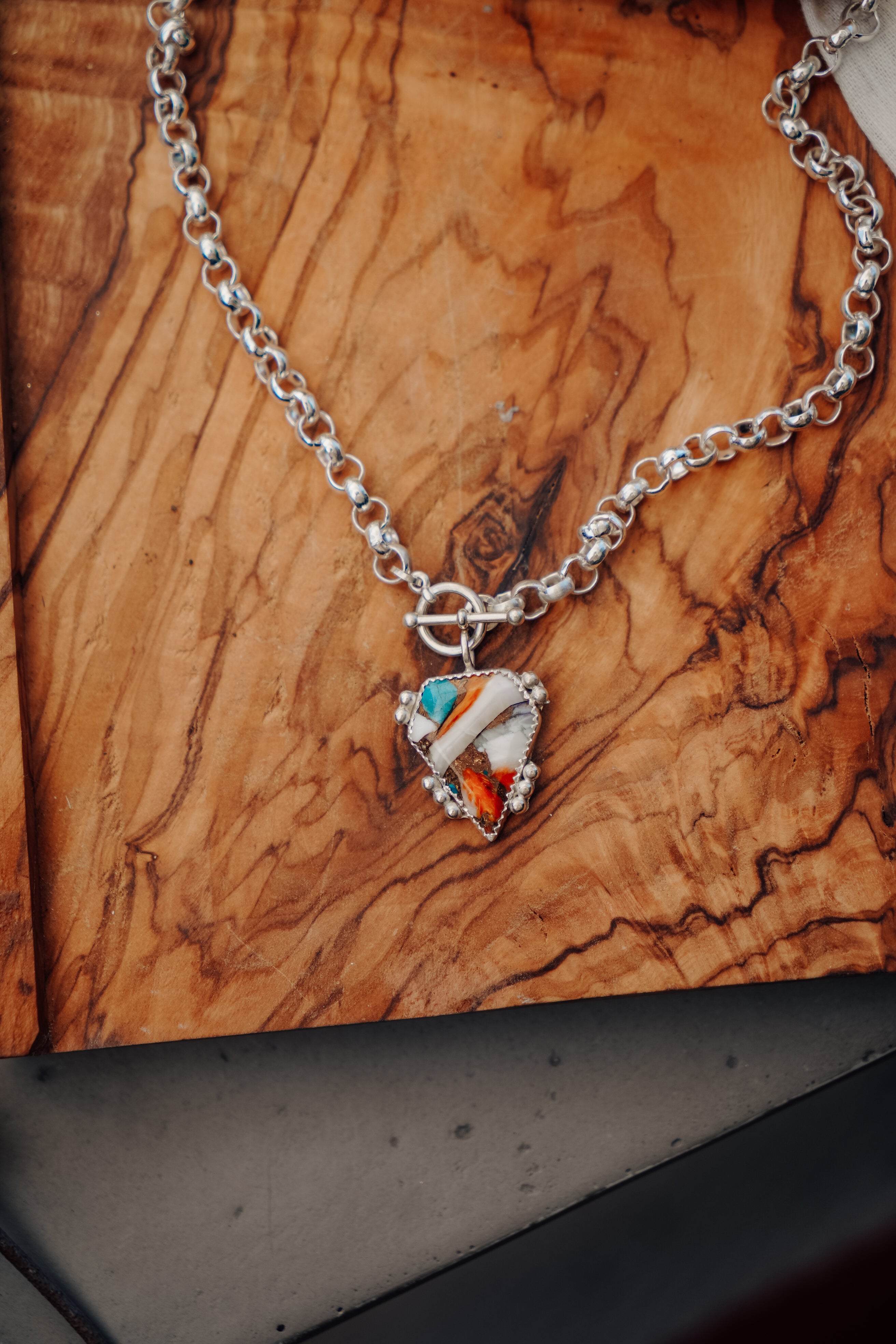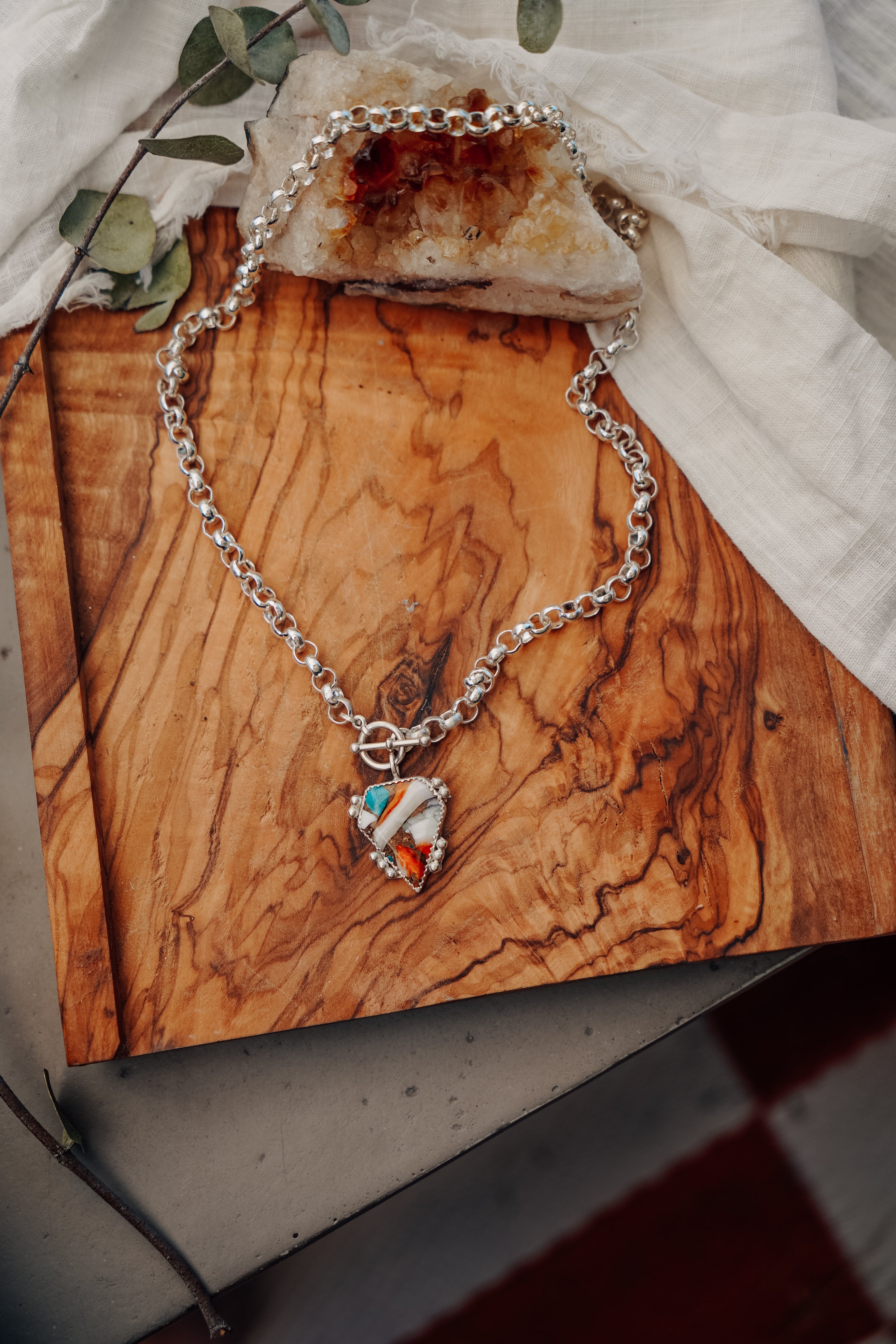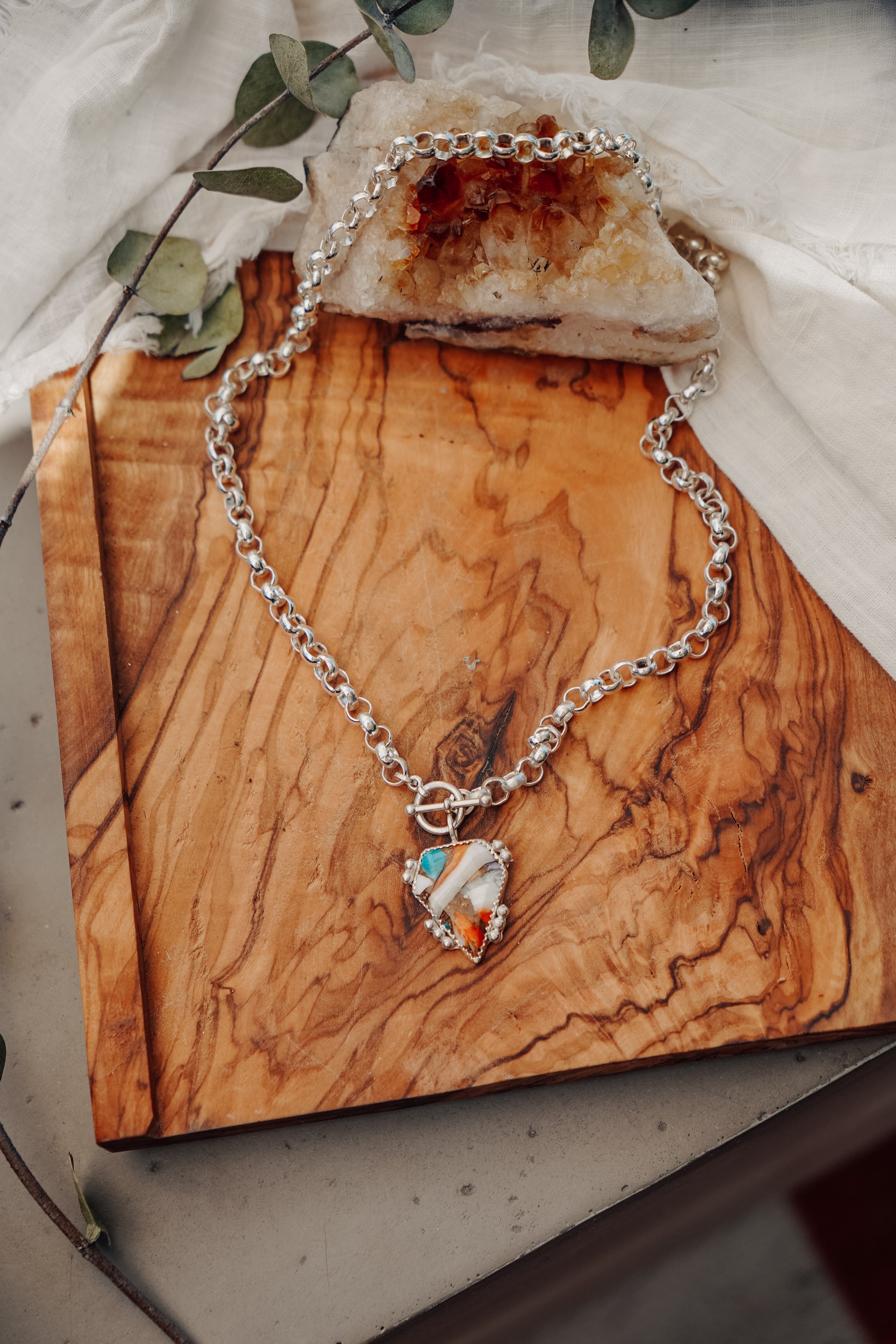 Toggle Necklace in Spiny Oyster with Kingman Turquoise